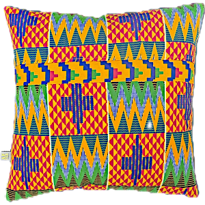 This quality cushion is handmade and features a vibrant Kente inspired print. The cushion back is made with the same fabric and features a contrasting print detail as the zip cover.