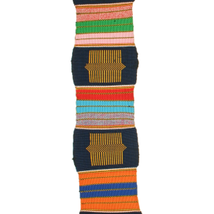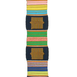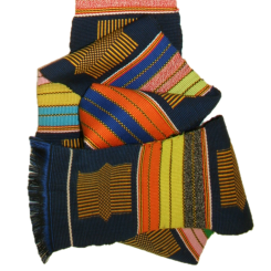 This is one of the oldest known Kente designs and means together or unity. This Akepedo – Atideka features multi-coloured stripes with hand-embroidered motifs applied at intervals along the piece. This beautiful fabric is handwoven in Ghana by Bob Dennis Ahiagble and his weavers.