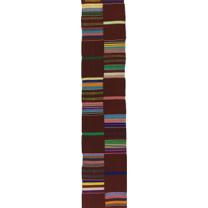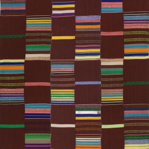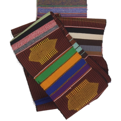 This is one of the oldest known Kente designs and means together or unity. With earthy tones and multi-coloured stripes, the cloth also features some hand-embroidered motifs. This beautiful fabric is handwoven in Ghana by Bob Dennis Ahiagble and his weavers.