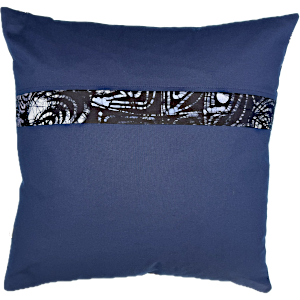 This quality cushion is handmade and features a genuine, 100% cotton, Nigerian Batik in shades of blue and mauve